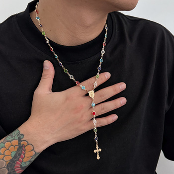 Minimalisme Jésus Croix Pendentif Collier Ras Du Cou pour Femmes Goth Coloré Cristal Chaîne Christian Y2K Cou Bijoux Cadeau (NL330)